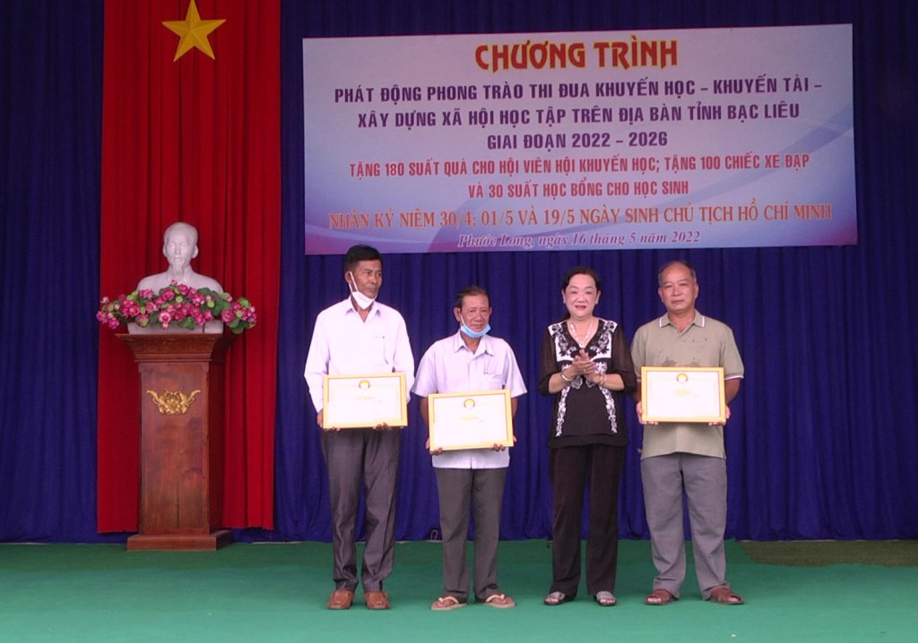 Dịp này, Hội Khuyến học tỉnh Bạc Liêu đã tặng giấy khen cho 03 cá nhân có thành tích tiêu biểu trong phong trào học tập suốt đời “học không bao giờ cùng”.