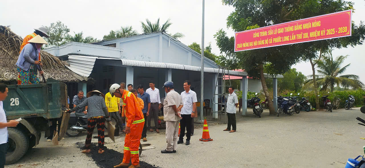 UBND xã Phước Long ra quân sửa chữa tuyến lộ giao thông nông thôn bằng nhựa nóng - phuoclong